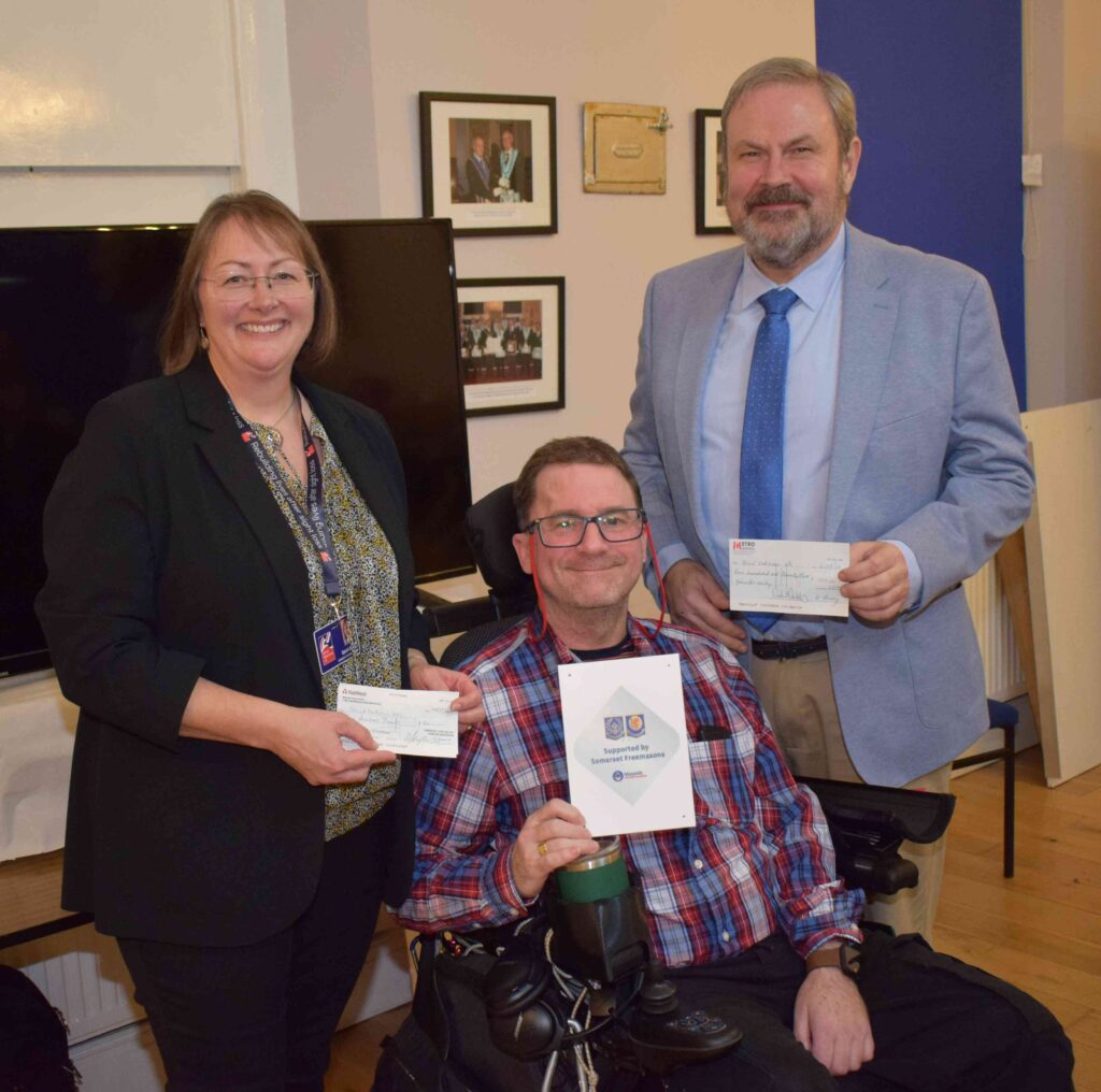 W. Bro Steve Collins, Assistant Provincial Charity Steward gave an interesting presentation about the charitable work of Freemasonry in Somerset, and the work of the Masonic Charitable Foundation. Part of W. Bro Steve’s role is to recognise the work of individual Freemasons Lodges in Somerset for their generosity in donating to their local charities, by adding to those donations from the Provincial Charity Fund. The evening concluded with Worshipful Master Alastair Slade presenting £600 to Blind Veterans UK that included a personal donation from W. Bro Brian Parry, and £500 to Dorothy House, following which W. Bro Steve presented a further £125 to each of the charities