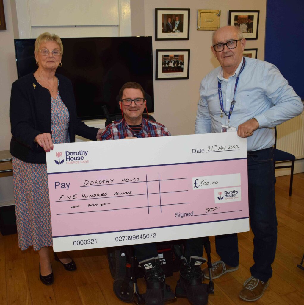 This was followed by Paul Hewitt, a Volunteer with Dorothy House who spoke about the formation and the work of the Hospice for patients, their families and carers, and that the majority of patients receive palliative care at home.  Paul and his wife Bernie are two of the one thousand volunteers working for the Hospice in many different capacities, all with the aim of fundraising to supplement the income from the NHS. Margaret Gould, widow of Bro. Gerald Gould, a long serving and highly respected member of the Lodge who was cared for by the Hospice before his death back in the summer, gave a very moving tribute for all the help and support the Hospice had given.