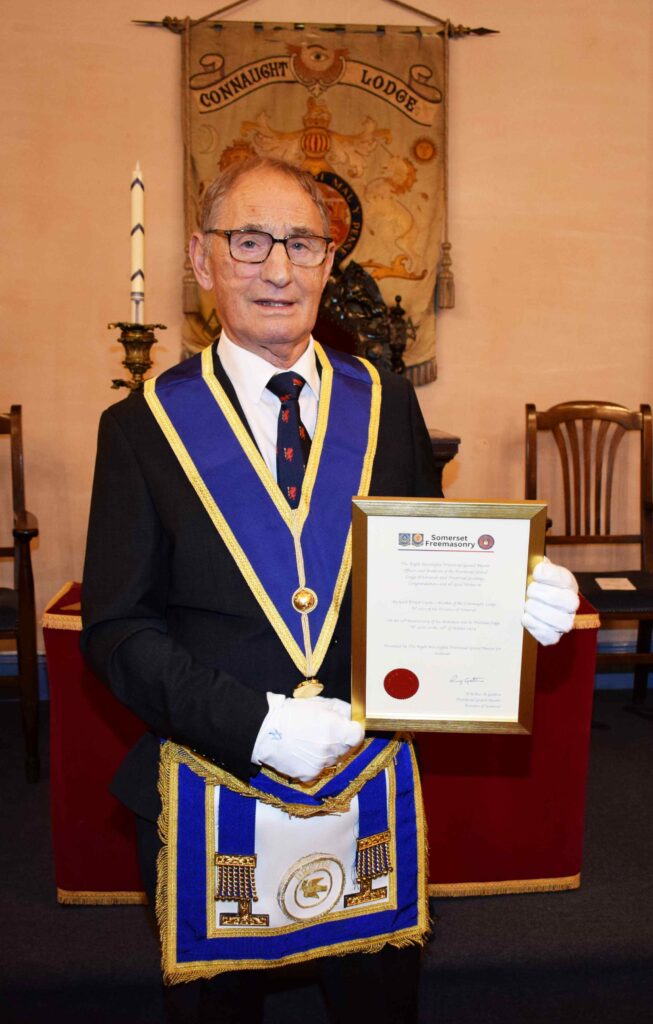 Richard was born during the Second World War and was one of ten children having three brothers and six sisters. His masonic career started in October 1974 when he and his brother Jack were initiated together into St Nicholas Lodge in the Province of Bristol. His brother Lionel, who is a Past Master of Connaught, was initiated into the same Lodge a month later. Richard’s other brother was also a member of St Nicholas along with their brother in-law Jim Crammond. A family friend had suggested that the brothers might enjoy Freemasonry, and the rest is history.