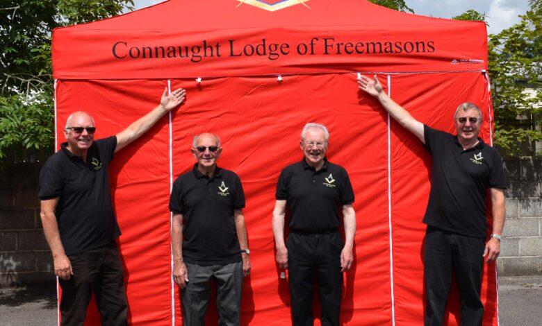Proudly showing of the new Lodge gazebo purchased for outdoor social functions and attendance at local community events.
